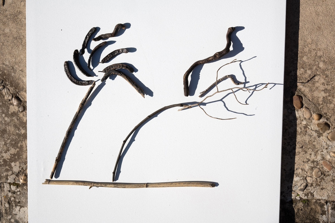 BRIEF: Using collected twigs and branches, create a drawing. Let chance be your guide.