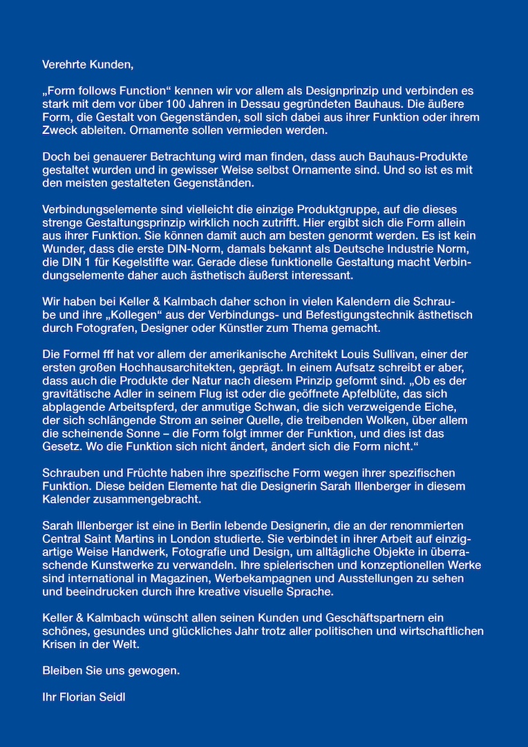 Keller and Kalmbach, german distributor for hardware materials, asked me to create their yearly calendar. I used these spare parts to replace elements of fruits and vegetables.