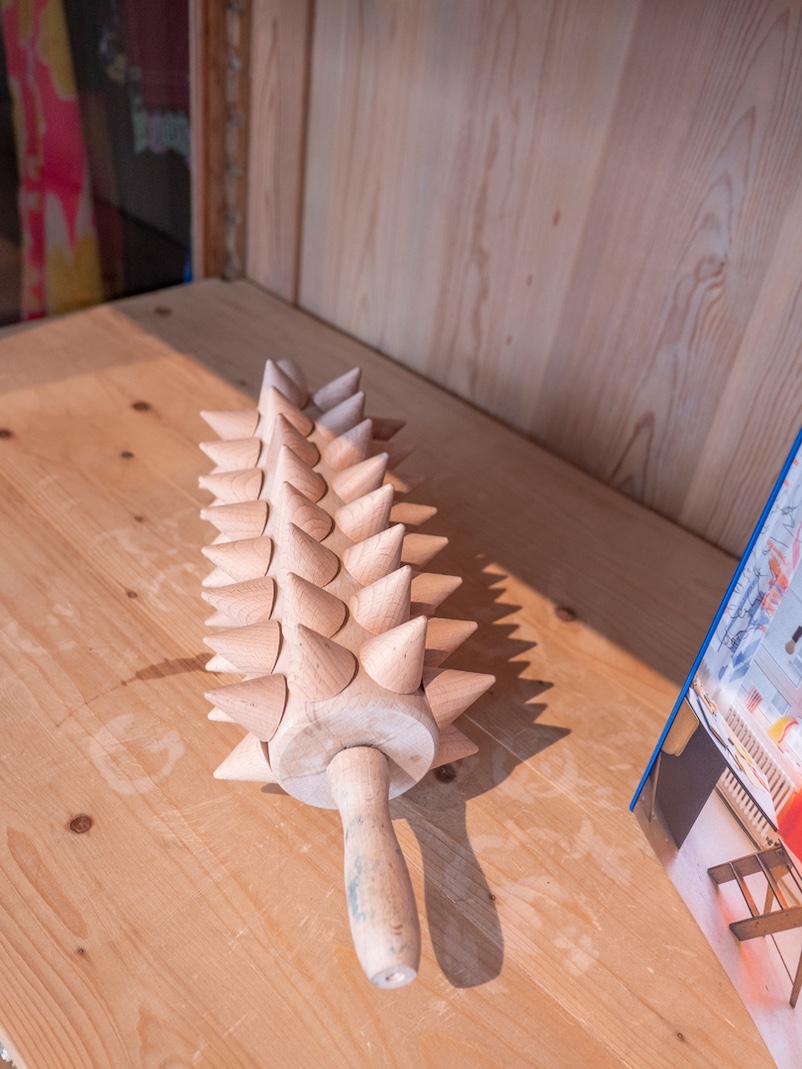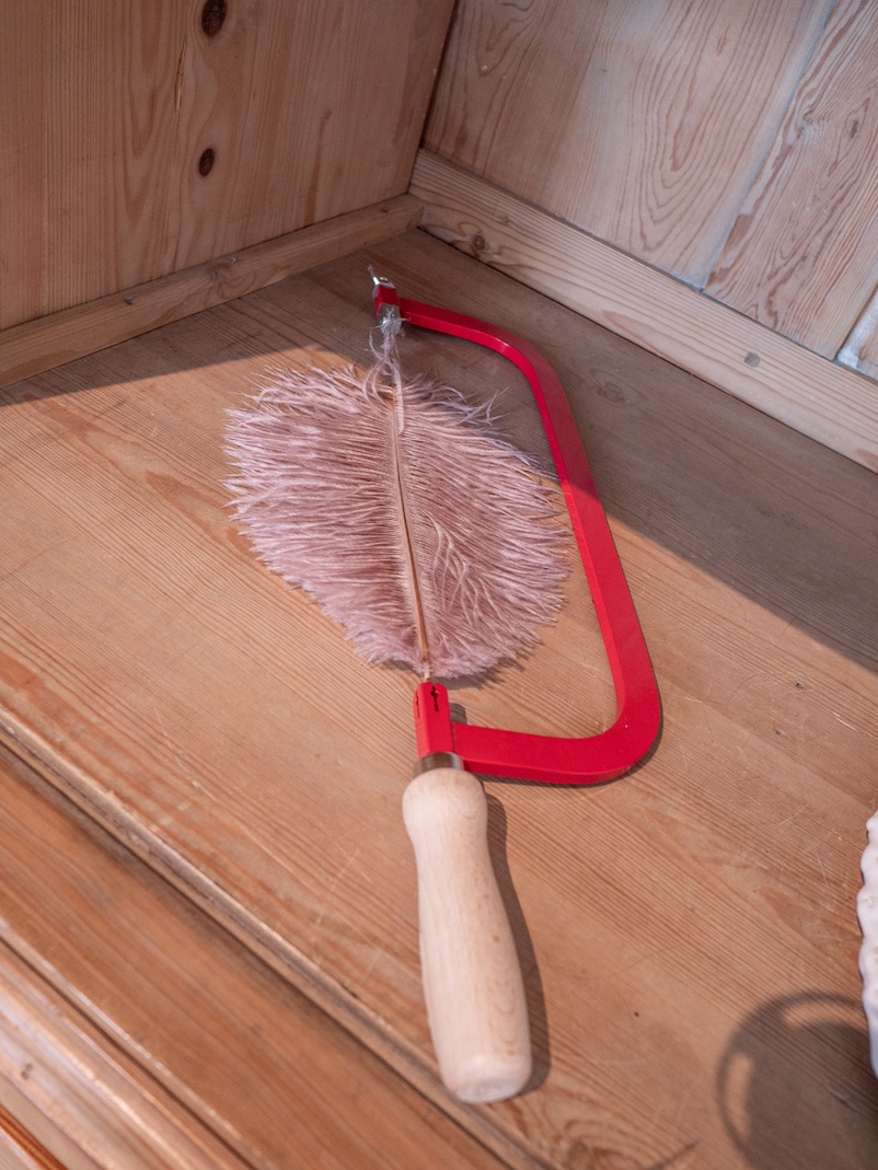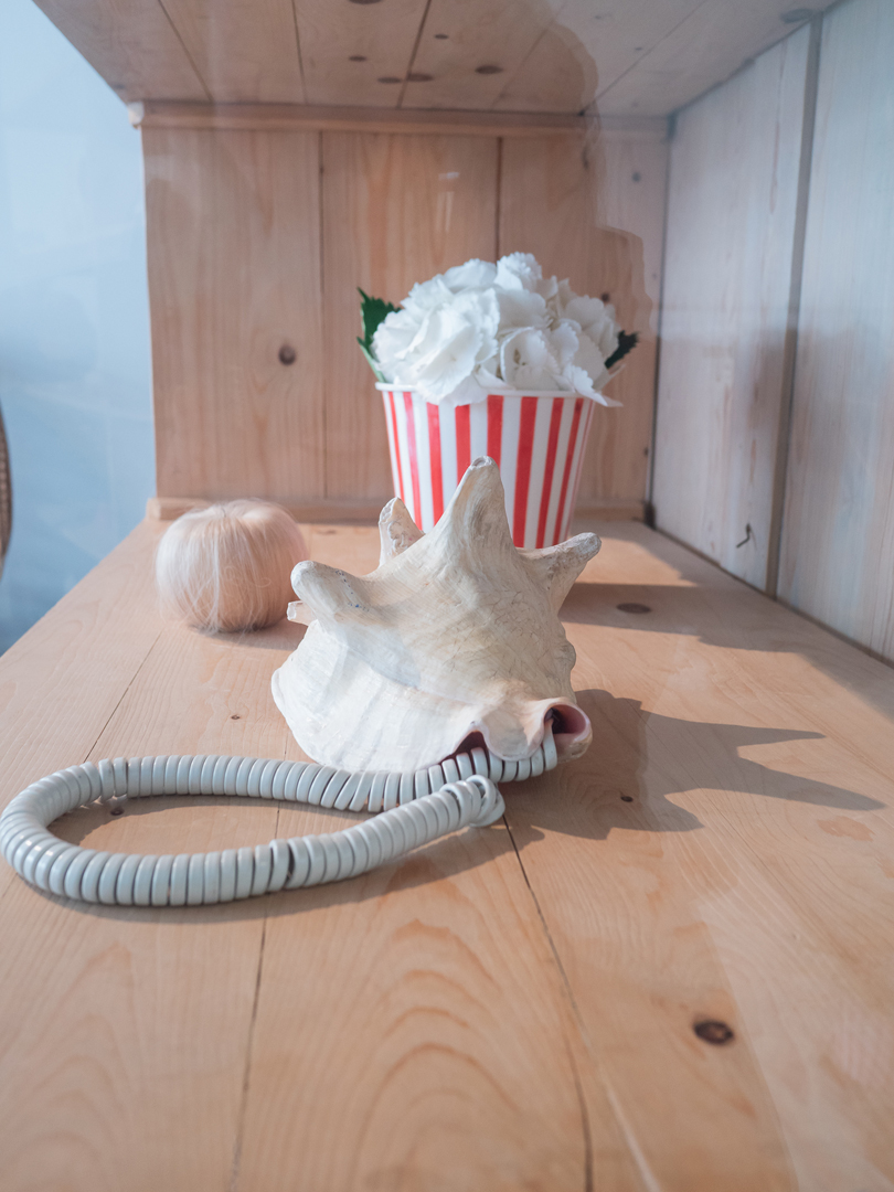 Pop-up show inside the concept store SalBazaar during Gallery Weekend presenting original objects alongside new limited editions. Gracing the shelves were a porcelain popcorn vase, a seashell macchiato, a piercing saw whose blade is replaced by a ostrich feather, and a black liquorice whip, among others.