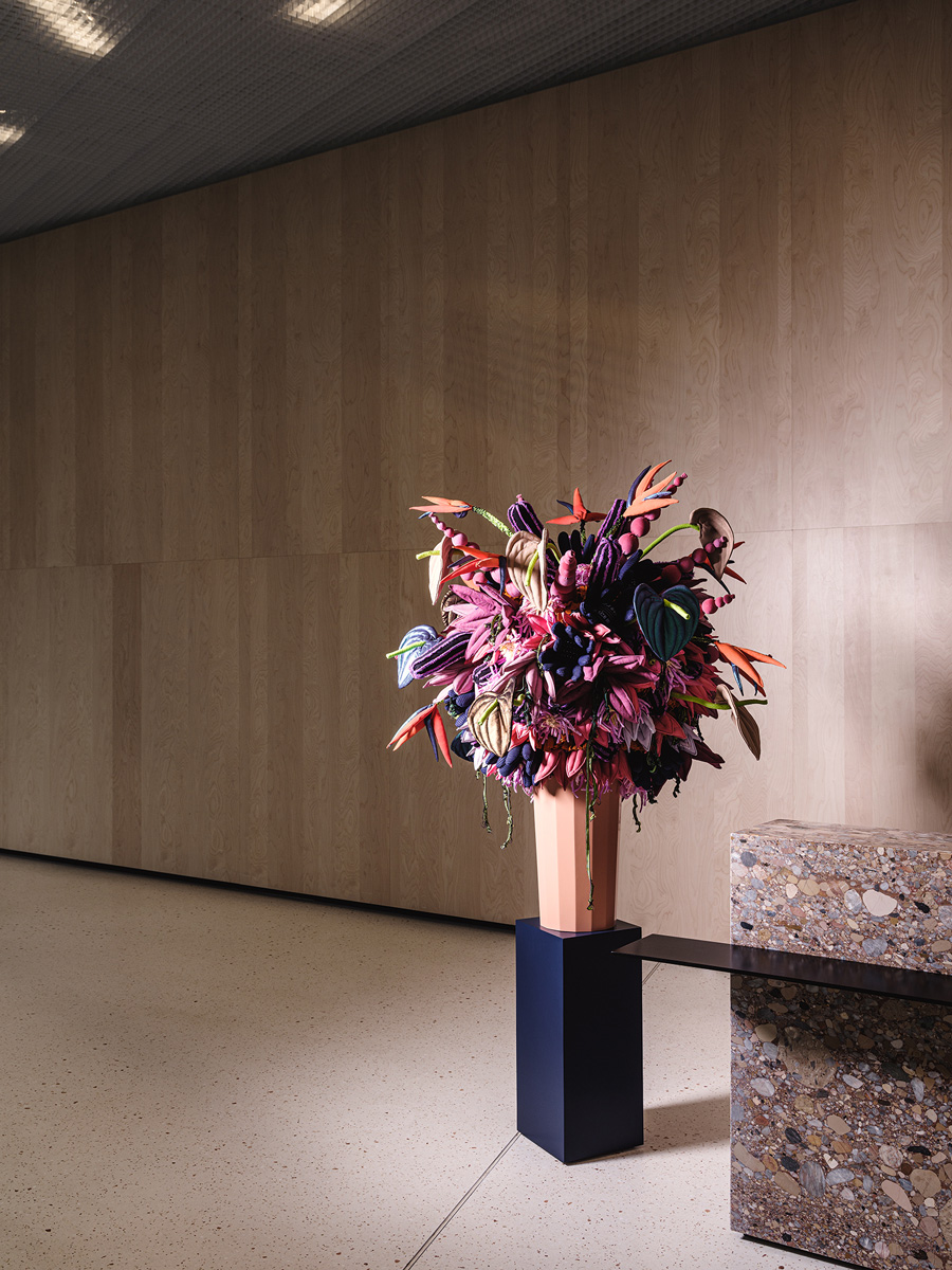 Soft Bouquet is an artwork created exclusively from knitted and fabric remnants deriving from medi’s production line. The off-cuts were transformed into a lush bouquet of flowers with 15 different blossom variations. Each individual flower was sewn with meticulous craftsmanship.