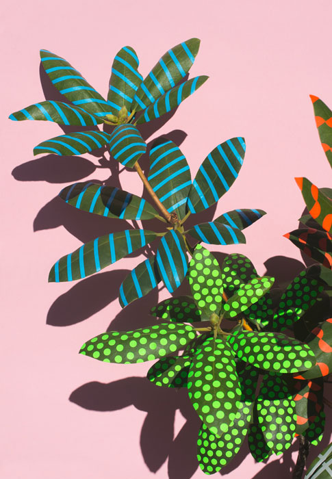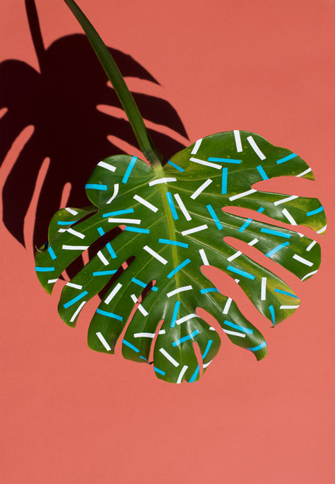 Plants can be jazzy too. With limited access to materials during a residency in Portugal, the artist created this series using only the tapes and stickers that she had at her disposal, as well as plant leaves that she collected in botanical gardens. The resulting images were later used for a campaign for the Frankfurt Opera House, and were also turned into textile prints for the brand AKRIS.